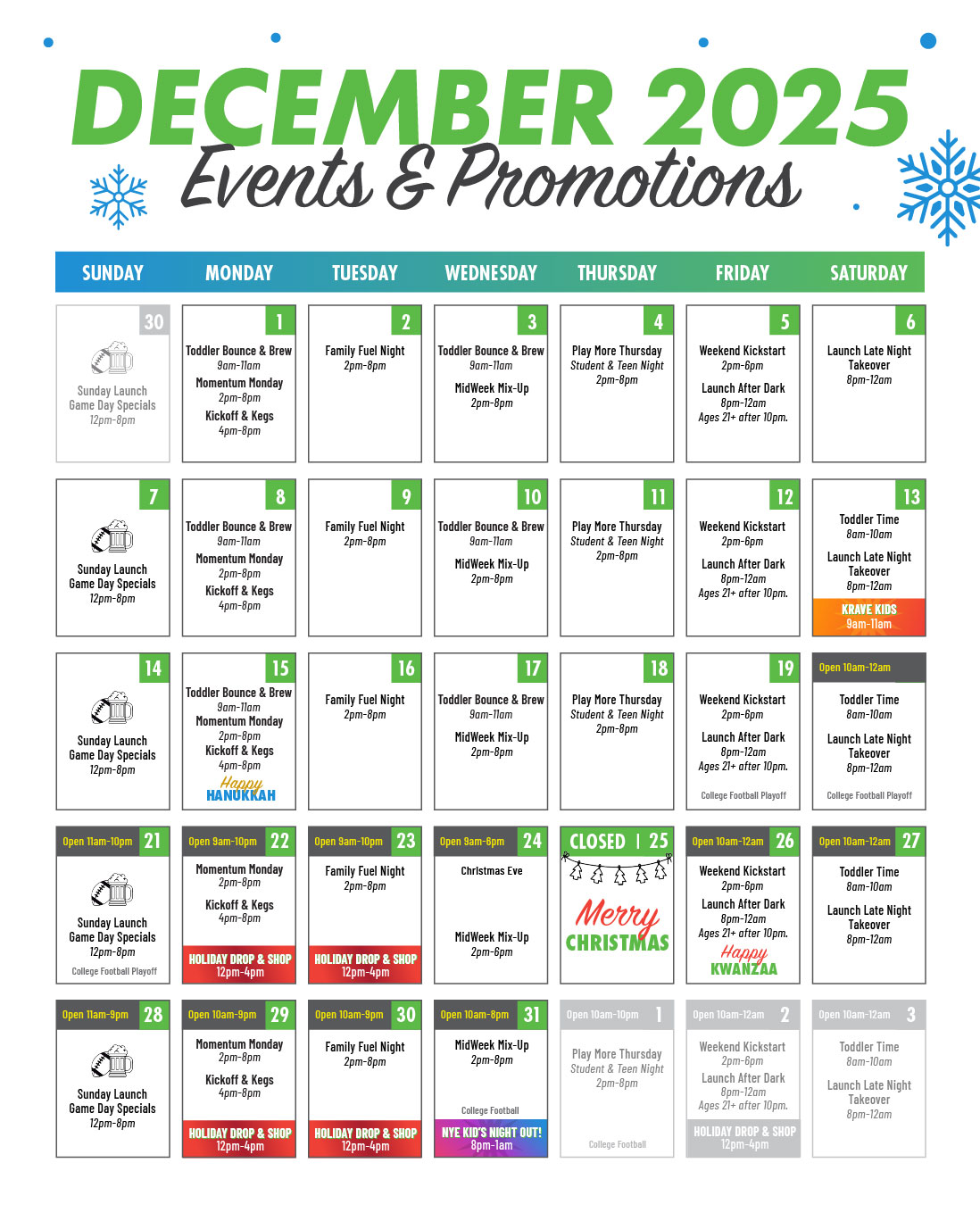 Sunday Launch Game Day Specials